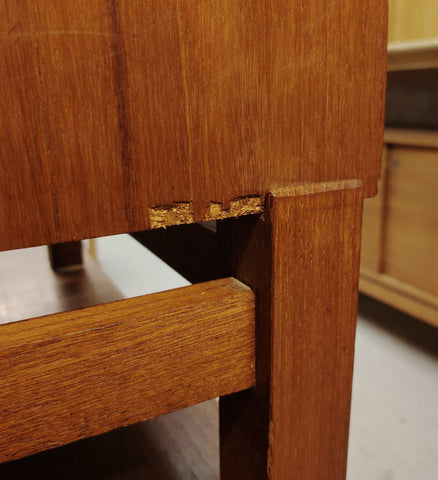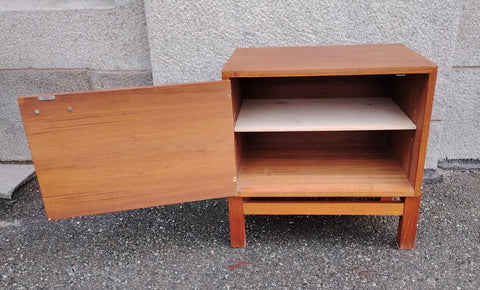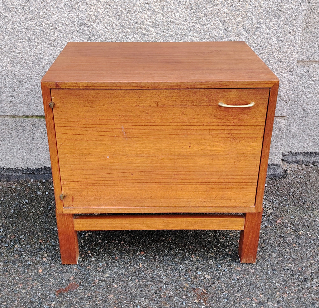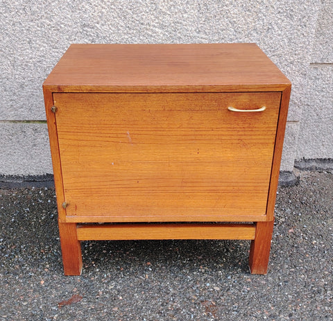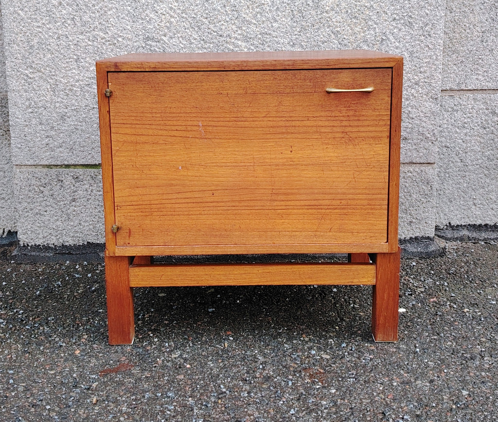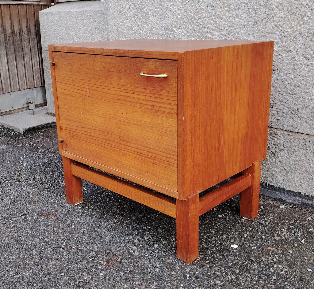 Näppärän kokoinen pieni kaappi. Kaappiosaa ei ole kiinnitetty jalkaosaan, vaan se lepää irrallisena jalkaosan päällä.