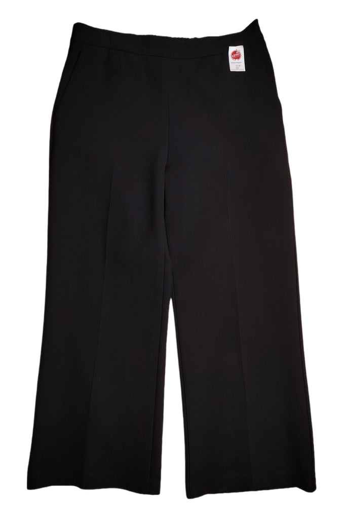 Mustat Marimekko nilkkamittaiset housut. Vyötäröllä selänpuolella kuminauha. Sivussa vetoketju. Sivutaskut.
