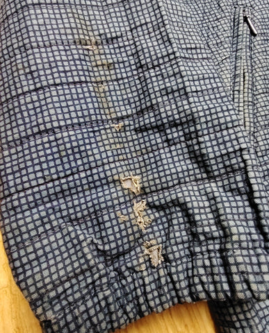 Tyydyttävä kunto. Hihoissa reikiä ja tahroja. Napit vaihdettu.