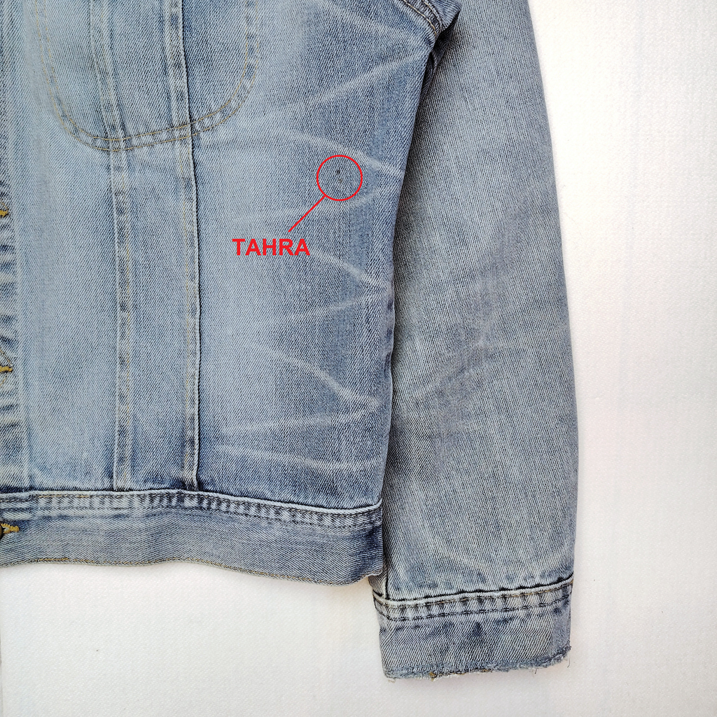 - huomautukset: hieman käyttökulumaa. Hihansuiden reunaa vahvistettu tikkauksilla. Pääntiellä kauluksen käänteessä havaittavissa tummentumaa. Muutama pienen pieni tahra. Katso kuvat.