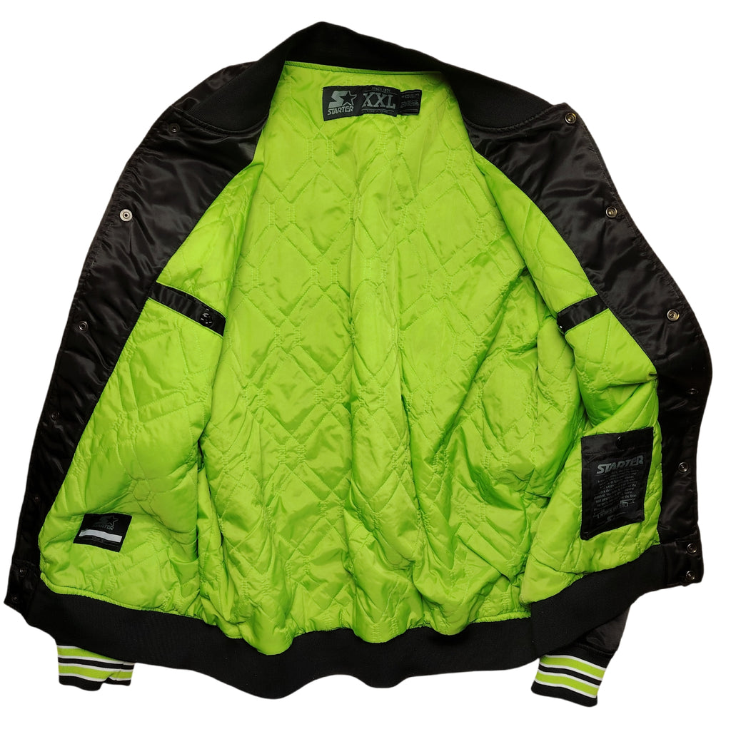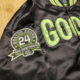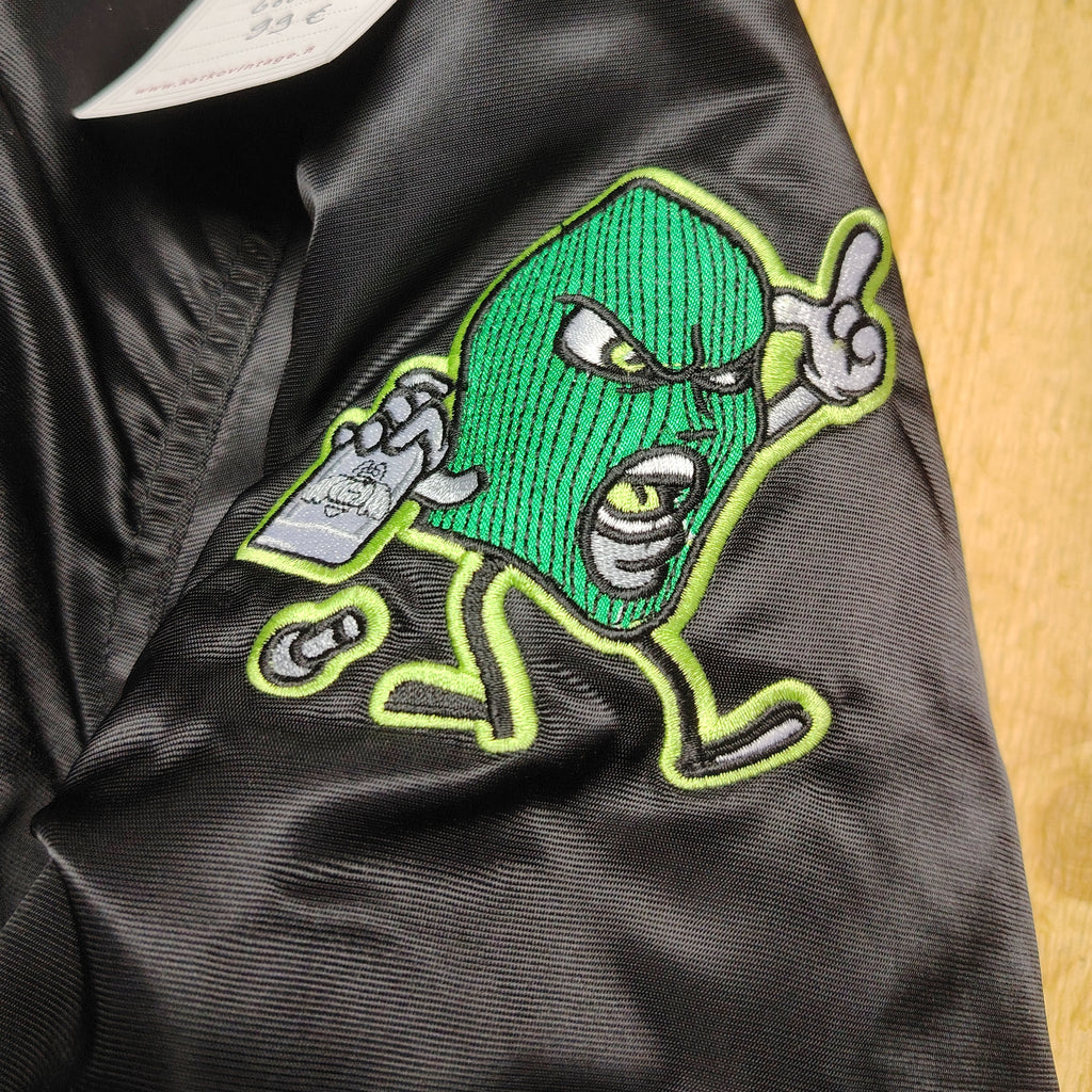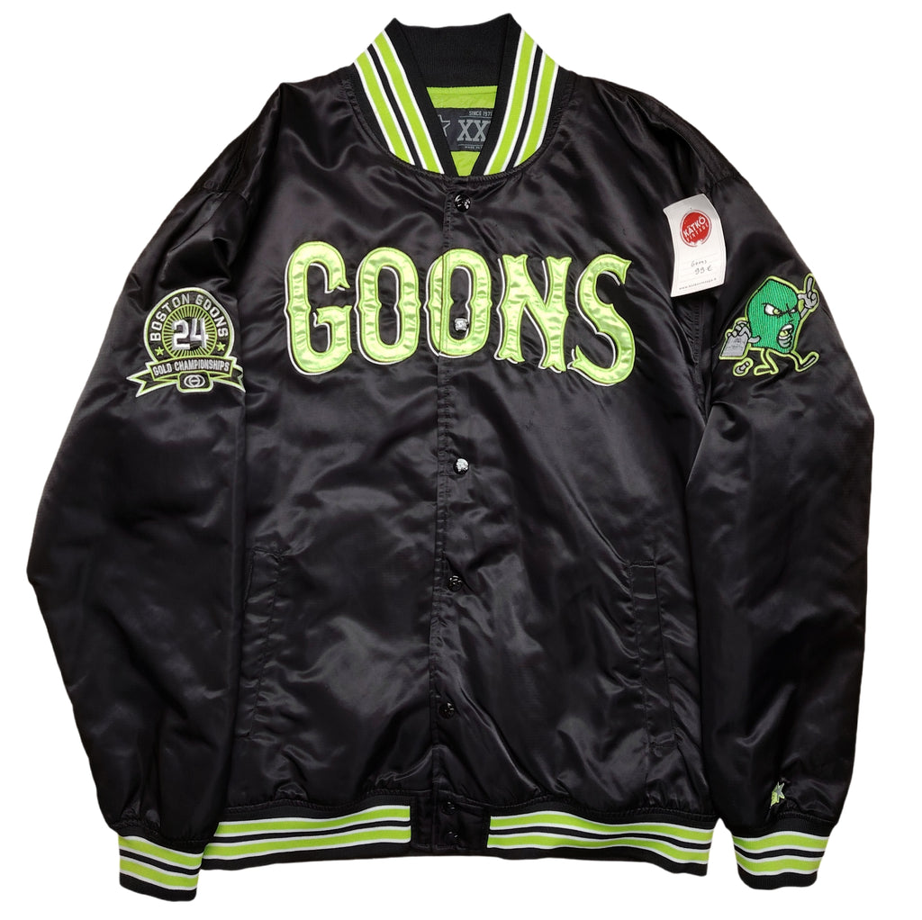 Starter DGK Gold Wheels GOONS satiininen varsitytakki. Painonepparikiinnitys. Sivutaskut. Pääntiellä, hihansuissa ja helmassa raidallinen resori. Kevyesti topattu tikkivuori. Vuorissa kaksi povitaskua. Hienot brodeeratut hihamerkit.