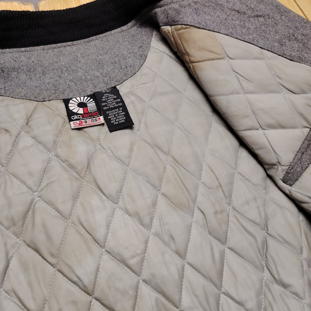 Musta/harmaa villasekoitteinen varsitytakki hienoilla kangasmerkeillä. Edessä painonepparikiinnitys sekä sivutaskut. Pääntiellä, hihansuissa ja helmassa raidallinen resori. Kevyesti topattu tikkivuori. Vuorissa povitasku.