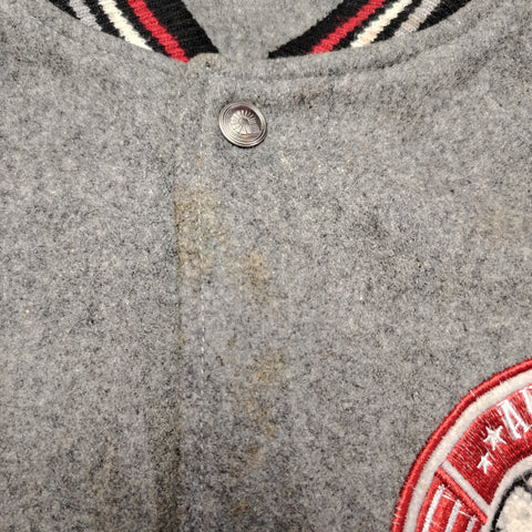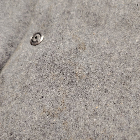 Tyydyttävä kunto. Edessä haaleata tahraa. Vuorissa havaittavissa paikoitellen selkeää tummentumista/tahraa. Ei takeita, että lähtee pesussa.