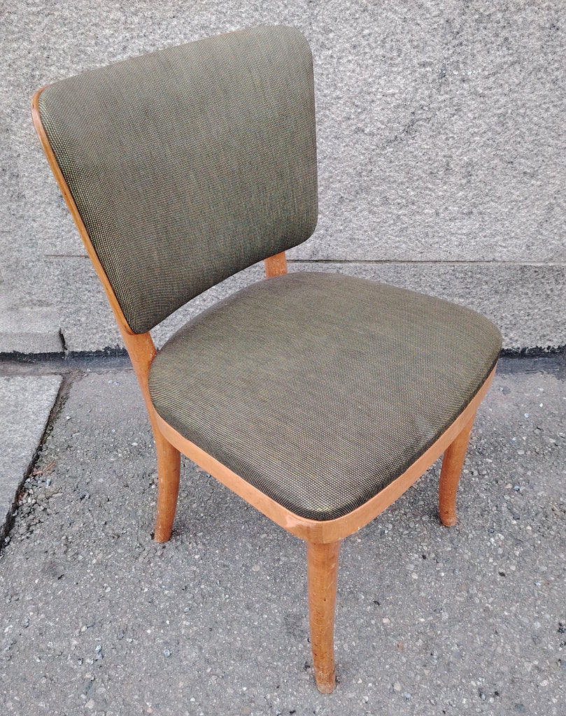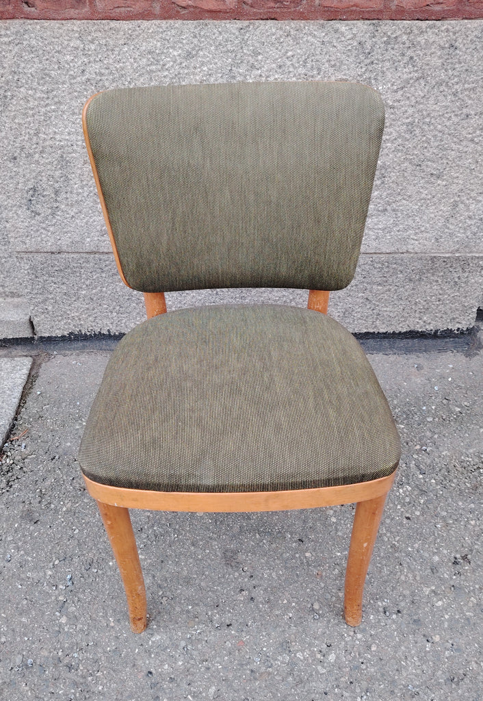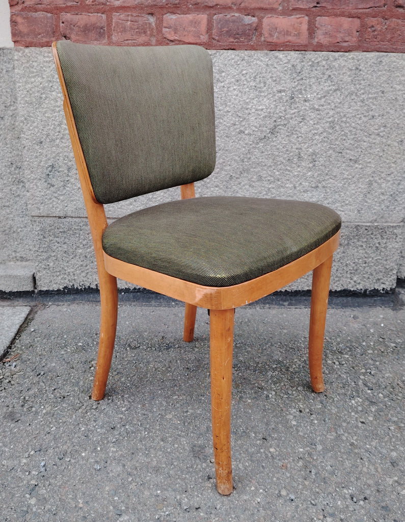 Puinen Werner West tuoli vihertävän harmaalla verhoilulla.