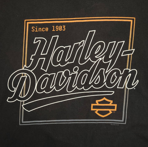 Musta Harley-Davidson t-paita. Hienot printit edessä ja selässä.